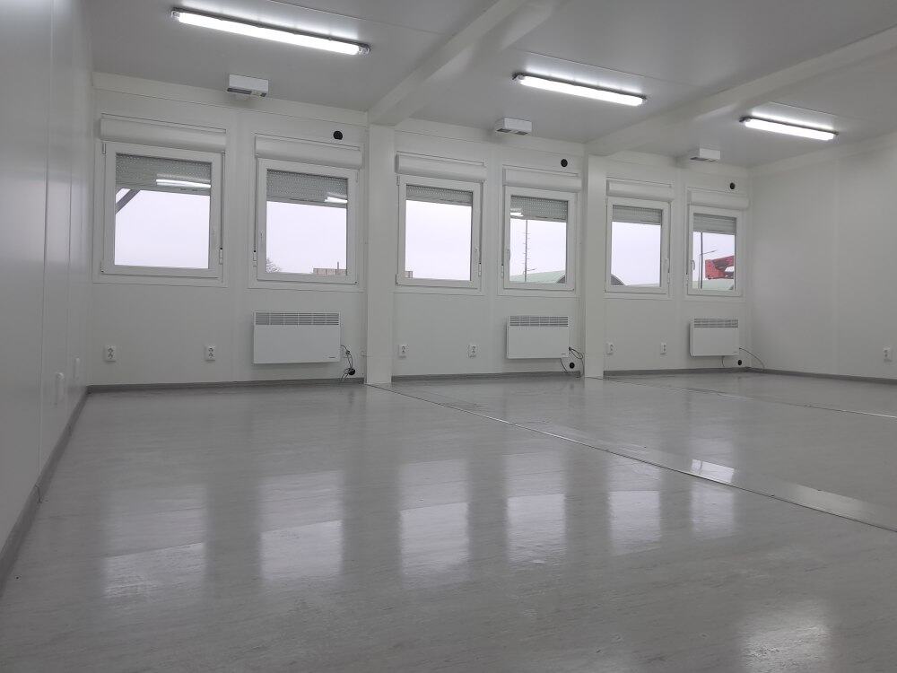 - Jasne i ciepłe biura: wnętrza zostały wykończone estetycznymi gładkimi panelami i wyposażone w rolety zewnętrzne w każdym oknie. O komfort termiczny dbają elektryczne grzejniki ścienne konwektorowe. To dedykowana przestrzeń do wstawienia mebli pracowniczych (pamiętaj, że oferujemy również wynajem mebli biurowych!).