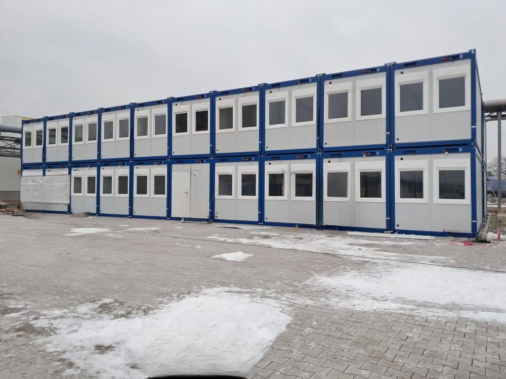 W ramach tego projektu dostarczyliśmy i zamontowaliśmy dwukondygnacyjny pawilon biurowy, składający się łącznie z aż 48 połączonych modułów. Największą zaletą tej realizacji był czas: od momentu złożenia zamówienia do przekazania gotowego obiektu pod klucz minęło zaledwie blisko 6 tygodni!