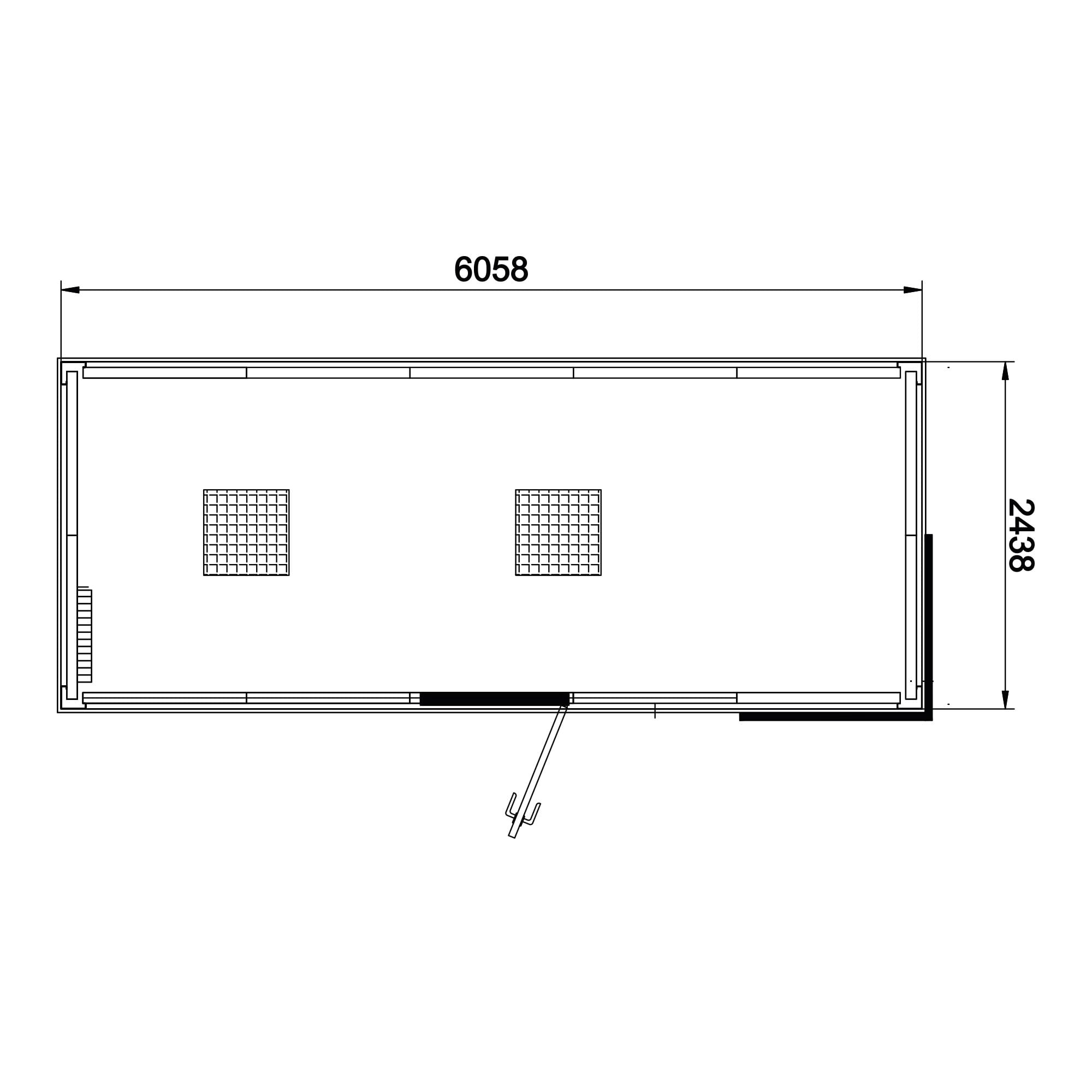 TRADE PAVILION made of two containers : width 4876 mm x length 6058 mm x height 2800 mm; internal height 2500 mm.