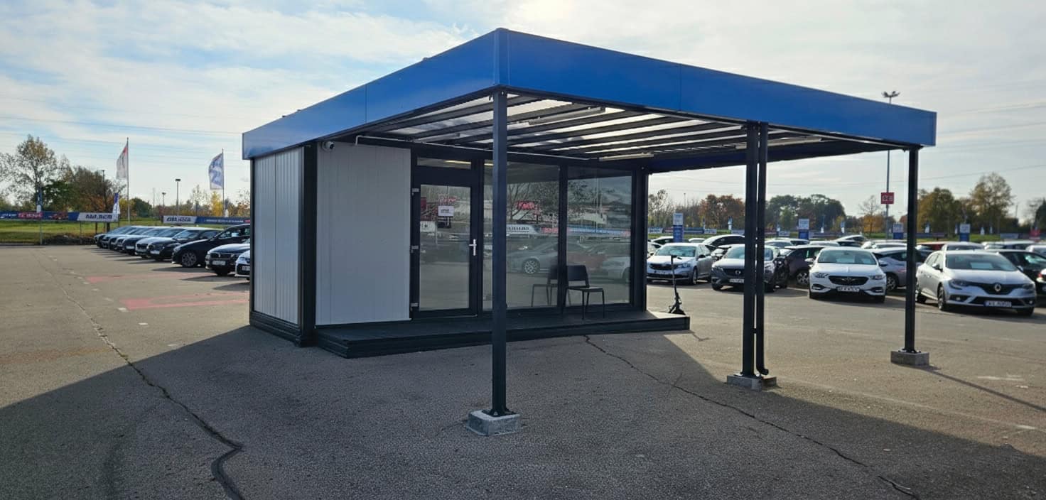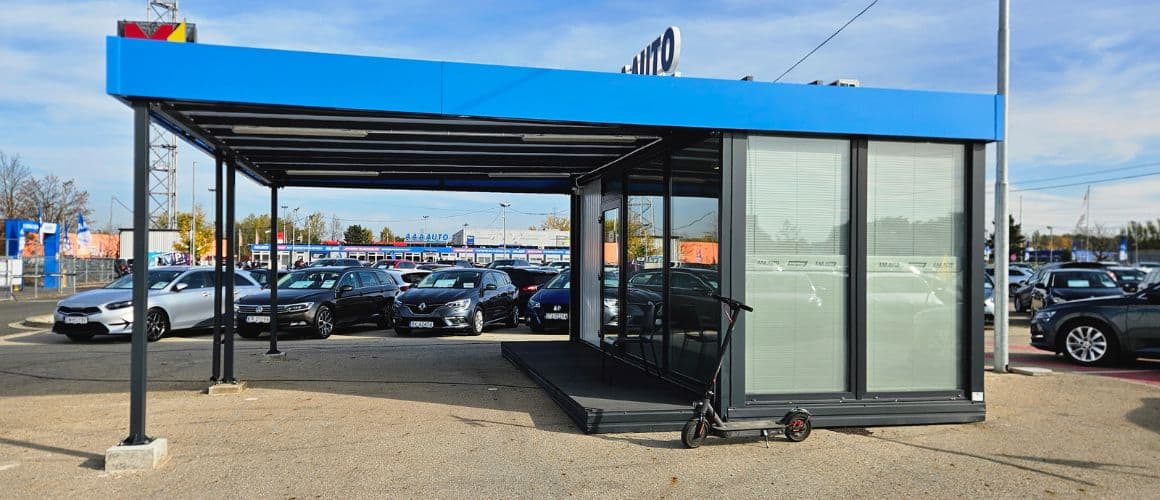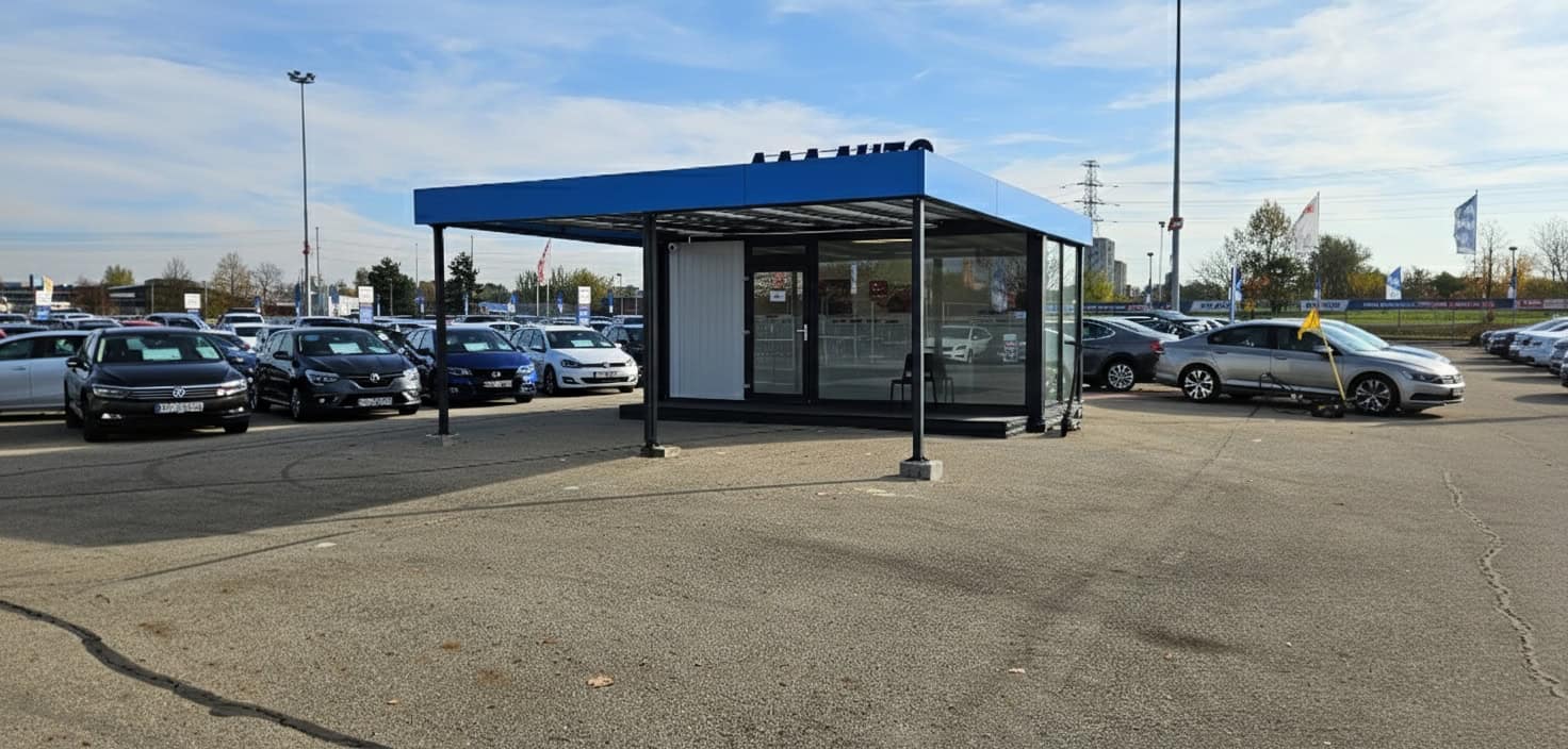 Nowoczesne biuro sprzedaży samochodów – kontener na komis samochodowy