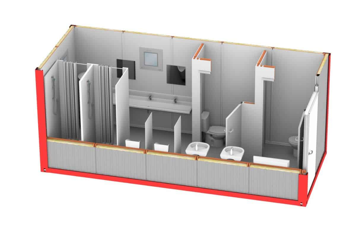 • Kontenery łączące prysznic i WC.
