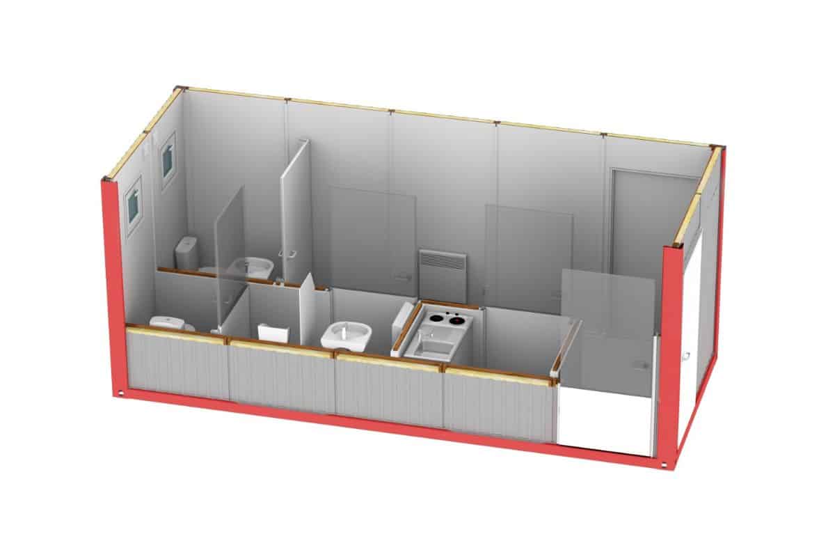 Wypożyczenie kontenerów sanitarnych od Mobilbox to idealny wybór dla zapewnienia zaplecza sanitarnego imprez rozrywkowych, placów budowy, obozów, terenów przemarszu demonstracji. Wielką zaletą kontenerów jest możliwość ich instalacji na terenie nieuzbrojonym, z osobnym zbiornikiem na nieczystości. Można zamówić osobne WC i kabinę prysznicową do każdego kontenera, także łączone, wbudowane, w rozmaitych rozmiarach. Kontenery socjalne to szybkie rozwiązanie dla taniej infrastruktury sanitarnej.